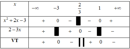 Nghiệm BPT \(- 3 < x < \frac{2}{3}\) và x > 1 (Hoặc ghi tập nghiệm \(S = \left( { - 3;\frac{2}{3}} \right) \cup \left( {1; + \infty } \right)\))