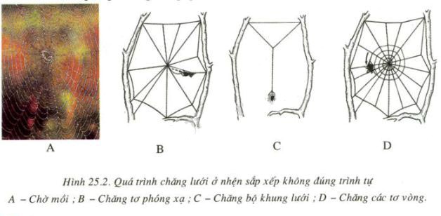 Câu 16: Quan sát hình 25.2 (SGK), đánh số vào ô trống theo một thứ tự đúng với tập tính chăng lưới ở nhện