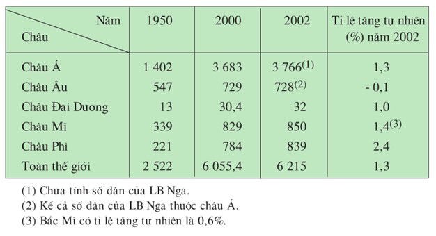- Nhận xét số dân và tỉ lệ gia tăng dân số tự nhiên của châu Á so với các châu khác và so với thế giới.