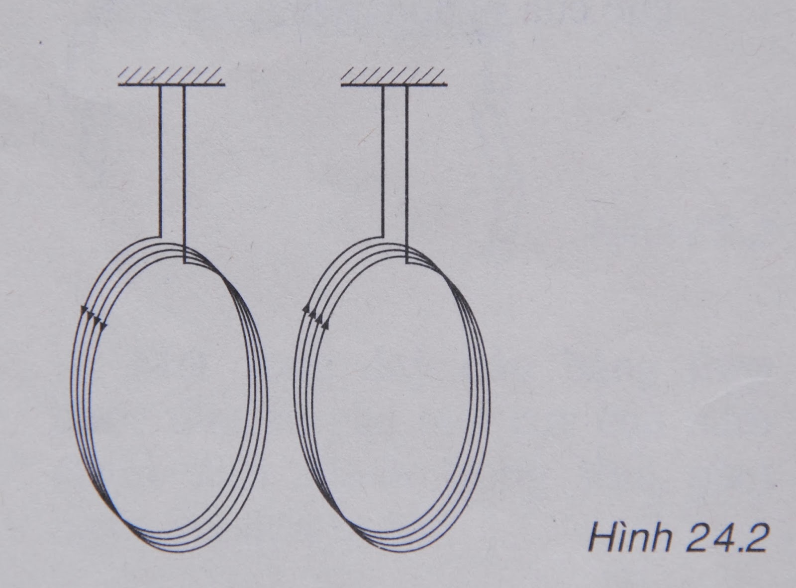 Một cuộn dây được đặt sao cho trục của nó nằm dọc theo thanh nam châm như hình 24.1. Đóng công tắc K, thọat tiên ta thấy thanh nam châm bị đẩy ra xa.