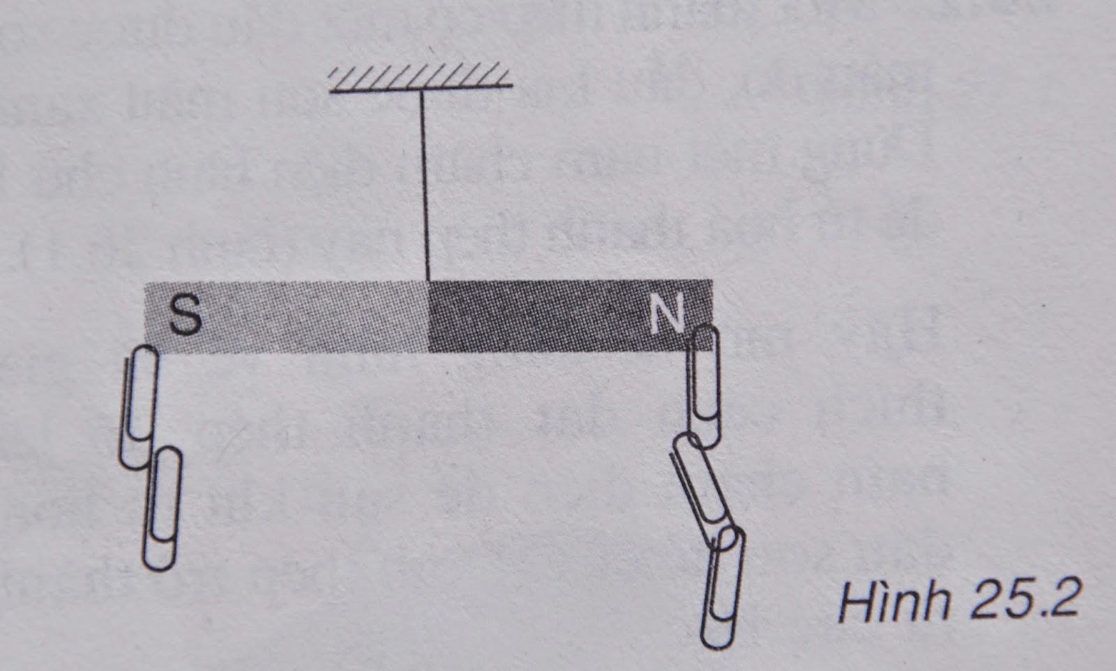Hình 25.2 vẽ một số kẹp giấy bằng sắt bị hút dính vào các cực của thanh nam châm.